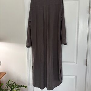 NEW Sundance GRAY maxi dress. Slits on each side. Buttons down the front. Long button-cuff sleeves with tiny ruffles. Neckline has the same tiny ruffles. 2 front buttoned pockets. Side pockets. Back is longer than the front. 100% Lyocell. Hand washable. Soft material, but substantial. Size XL. New, never worn. 2nd photo is the best representation of the color. FIRST photo shows the dress in olive green on a model so you can see how it fits. My dress is gray. I believe I purchased this for $139.