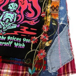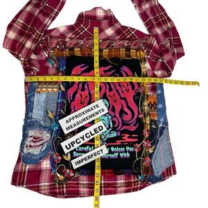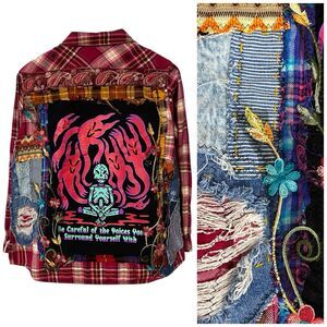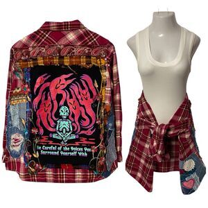 Upcycled Flannel Shirt Womens Sz Large Shacket Halloween Grunge Camp Rock