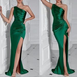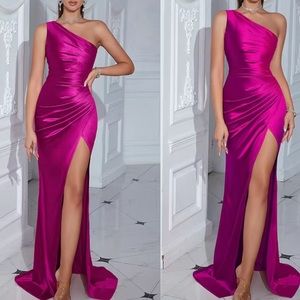 Luxe black one shoulder slit thigh party formal prom gown dress