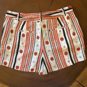 These shorts from LOFT feature a striking rust red, light blue, and black color palette, perfect for making a bold statement. Tie waist detail, but they do have hook and zip enclosure. Crafted for comfort and style! The unique design ensures you stand out in any casual setting. Like new and super cute! 4” inseam, 16” waist while flat.