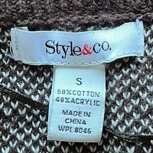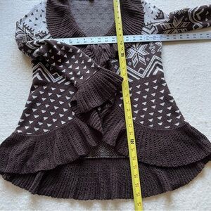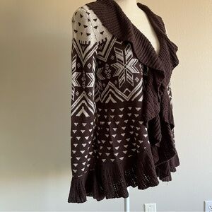 Style & co Brown and White Women's cardigan sweater open weave Ruffle front S