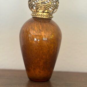Enhance your home with this elegant amber glass diffuser, featuring intricate gold accents. Perfect for adding a touch of sophistication to any room.