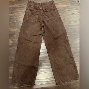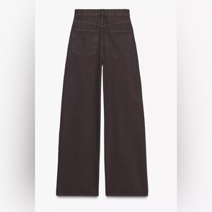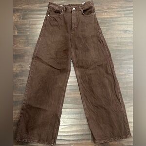 Chic wide-leg jeans in dark brown. Stylish and versatile. Perfect for any wardrobe.