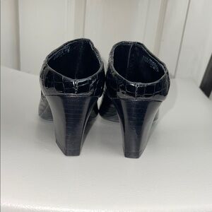 -Heel: 2in Block heel, covered in matching material.