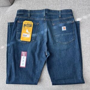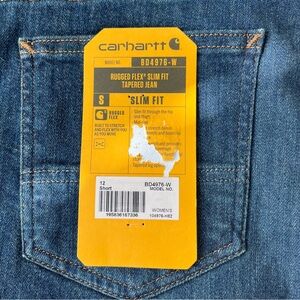 Blue denim rugged flex slim fit tapered jeans from Carhartt. Size 12 short. New with tags!
