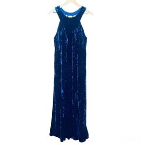 Morgan & Co. Crushed Velvet Royal Blue Halter Gown - Strappy Back Slit Dress 18W