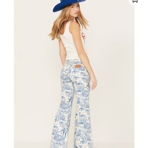 WRANGLER WOMEN'S HIGH RISE NAUTICAL PRINT WANDERER FLARE JEANS