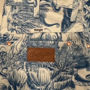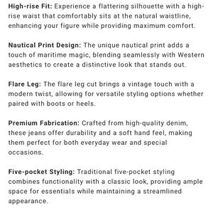 Wander through the spectrum of style and tradition with the Wrangler Women's High Rise Nautical Print Wanderer Flare Jeans, a bold piece that redefines Western-inspired fashion for the modern woman. NWT size 27
