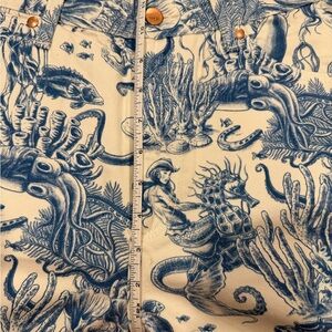 White with allover blue nautical print