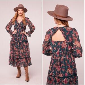 Free People Lauren Band Jacket Military Embroidered Gold Open Front