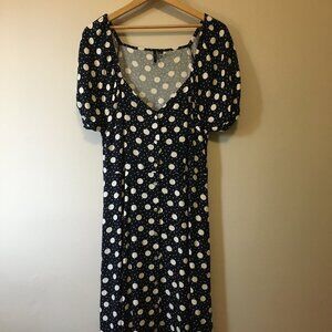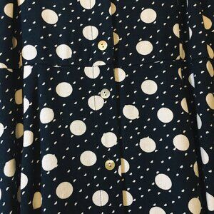 Very preowned condition, empress waist, linen-blend, dark navy blue and white polka dot, puff sleeve dress by Vero Moda. This dress is too sweet. Such a wonderful combination of details and features. The buttons going down the front look as though they might be mother of pearl. Some of them are more yellowish than others and I'm not sure if this was intentional or just something that happens with the shells. Not noticeable except under certain lighting conditions. Still very cute and all natural. Love the length. 55% viscose, 45% linen -Polka dot pattern -Empress waist/high waist -Elasticized neckline and sleeve hems -Lightweight and comfortable -Puff sleeves -Long and flowing -Button down closure in mother of pearl/pearly buttons -Figure flattering -#Bohemian, #coastal grandma, #coastal, #polka dot, #cottagecore, #prairiecore -Summer, Spring, Fall Please see photos for measurements. Thank you! Size: medium 15$ off your first Poshmark order with sign-up code: CATNTONIC Please let me know if you have any questions. Offers are always welcome 🌺