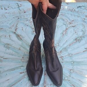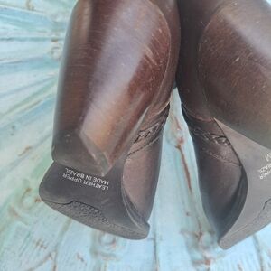 Step out in style with these elegant women's western boots. Featuring a beautiful floral leather design, these boots are perfect for any occasion. The rich brown and bronze color adds a touch of sophistication to your outfit.