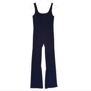 OQQ Ribbed Yoga Sleeveless Padded Bell Bottom Flare Jumpsuit MEDIUM Black