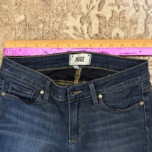 Chic dark blue skinny jeans by PAIGE. Sleek and stylish for any look.Has some wear but still good condition