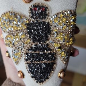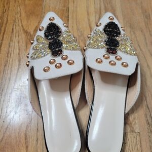 Euro Beaded White Mules with Bee Design On Velvet Size 38 Or Size 7 1/2 Shoes