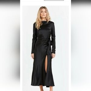 BEC + BRIDGE AGATHA LONG SLEEVE MIDI DRESS IN BLACK SZ 2