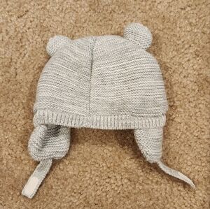 Baby GAP Gray and White Sherpa Lined Bear Beanie, size 0-3 months