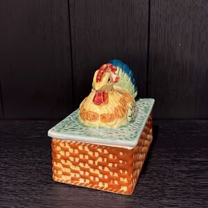 Vintage Ceramic Hen 1960's empty trinket box. Pretty hen on a basket Shafford Japan Excellent Condition 💕💕
