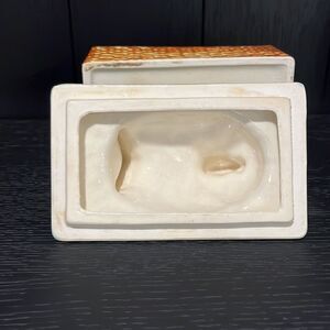 Vintage Ceramic Hen 1960's empty trinket box. Pretty hen on a basket.