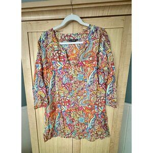 Kikisol Blouse Shirt Womens Medium Colorful Floral Tunic Cover Up Coastal Beach