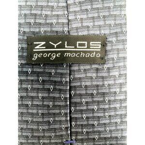 Zylos George Machado Black Gray Geometric Silk Tie Neck Luxury Vintage Mens