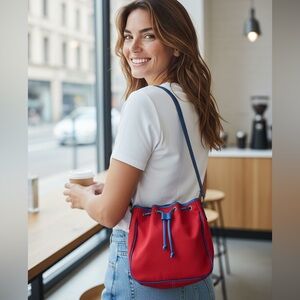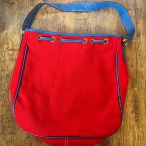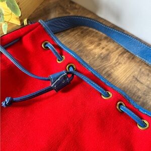 Vintage Neal Decker Blue Leather Red Canvas Purse Like New!