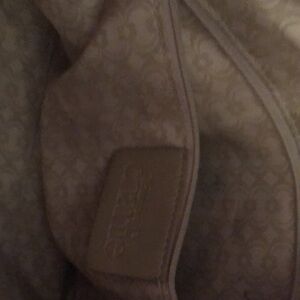 Charlie vegan leather tote color pink and a bone color has a zipper in the front preowned in good condition