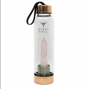 Anthropologie Gypsy Soul Rose Quartz Crystal Glass Water Bottle