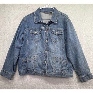 Chicos Platinum Jacket Women's Large Blue Jean Medium Wash Denim Pockets