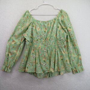 Torrid Shirt Womens Size 1X Floral Peasant Top Green Floral Long Sleeve New