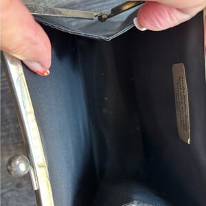 This is a vintage black satin Christine Macfadden purse with stitched authenticity emblem. Measures 6 x 5.5 inches. Mint condition