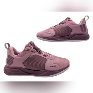 Elevate your activewear with these stylish K-Swiss women’s athletic sneakers. Designed for comfort and performance, these shoes feature a breathable mesh upper, lightweight cushioned midsole, and durable rubber outsole for excellent traction and support. The vibrant pink and purple ombré design adds a bold, sporty touch to any outfit—perfect for training, casual wear, or running errands.