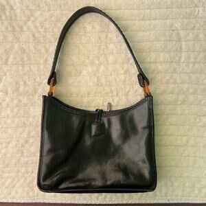 Cole Haan Black Leather Shoulder Bag Vintage Amber Handle Purse