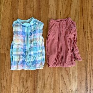 Little Sleepies Zippy Bundle: Pastel Plaid and Clay Ribbed, 6-12 mo