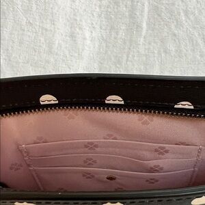 Elegant Kate Spade clutch with bold polka dots. Ideal for any occasion.