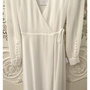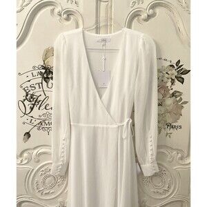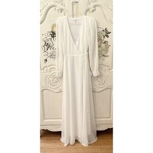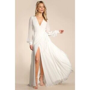 Lulus My Whole Heart Dress Women's S White Maxi Long Sleeve Wrap NWT
