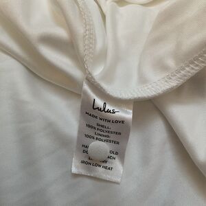 The Lulus My Whole Heart Dress is a stunning white maxi dress with a V-neckline and tie closure, perfect for formal occasions like weddings or parties. Made from gauzy woven polyester fabric, this long-sleeve dress features covered button cuffs and a wrap bodice, exuding a glamorous and elegant style. The dress is lined and designed in a fit & flare silhouette, making it a beautiful choice for all seasons.
