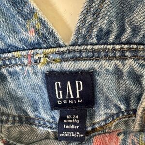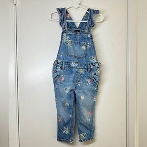 Baby Gap Denim Floral Bouquet Blue Jean Overalls Size 18-24 Months
