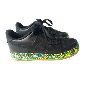 Nike Air Force 1 Premium Shoes Size 5.5 Y Black Volt Sneakers