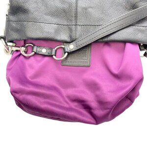 COACH Y2K Carly Black Leather Hobo Shoulder Bag w Silver Chain & Purple Lining