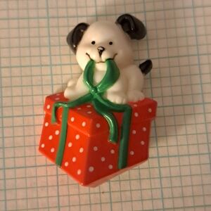 Russ Cute Puppy on Red Christmas Gift Box Brooch Pin