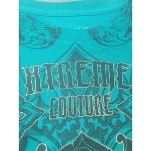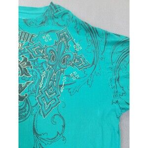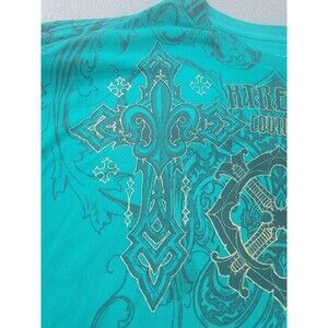 Xtreme Couture Shirt Mens 5XL Teal Graphic Cross Fleur-de-Lis Affliction Tattoo