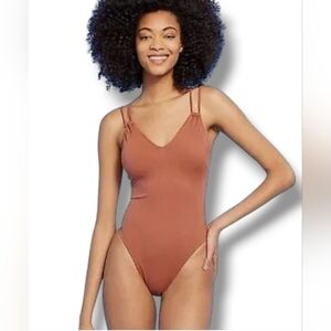 Shade & Shore Tan Coffee Color Adjustable Straps Bathing Suit Swimsuit Size L