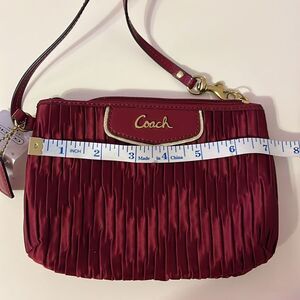 Coach Ashley Vintage Y2K Satin Burgundy Wristlet Red Pleated Clutch Bag Glam New