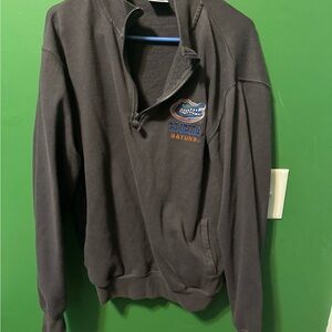 Black hoodie featuring a colorful embroidered design. Comfortable and stylish.