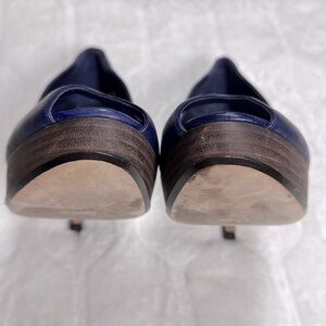 Cole Haan womens leather peep toe platform pumps size 9 navy blue high heel shoes