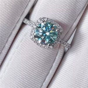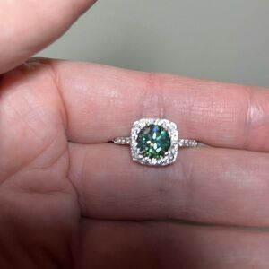 This stunning ring features a captivating green stone Moissanite 2.0 carat,set in a sleek 18 K white gold plated over silver band. Perfect for adding a touch of elegance to any outfit.