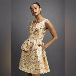 ZAC POSEN for TARGET Floral Print Sleeveless Brocade Mini Dress in Yellow/Pink