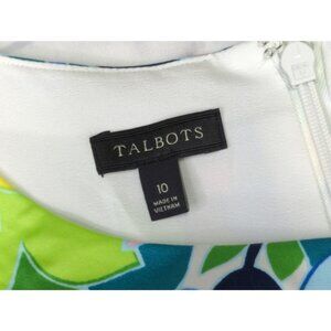 Talbots Women's 10 Floral Garden Party Dress features a vibrant multicolor palette, sleeveless design, and zip back. Made from a comfortable cotton Spandex blend, it's perfect for any occasion.