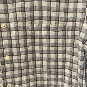 This summer perfect short sleeved button down is made of a 55% linen/45% cotton blend. It’s in pristine condition and a perfect addition to your summer wardrobe. Thoroughly washed and steamed.